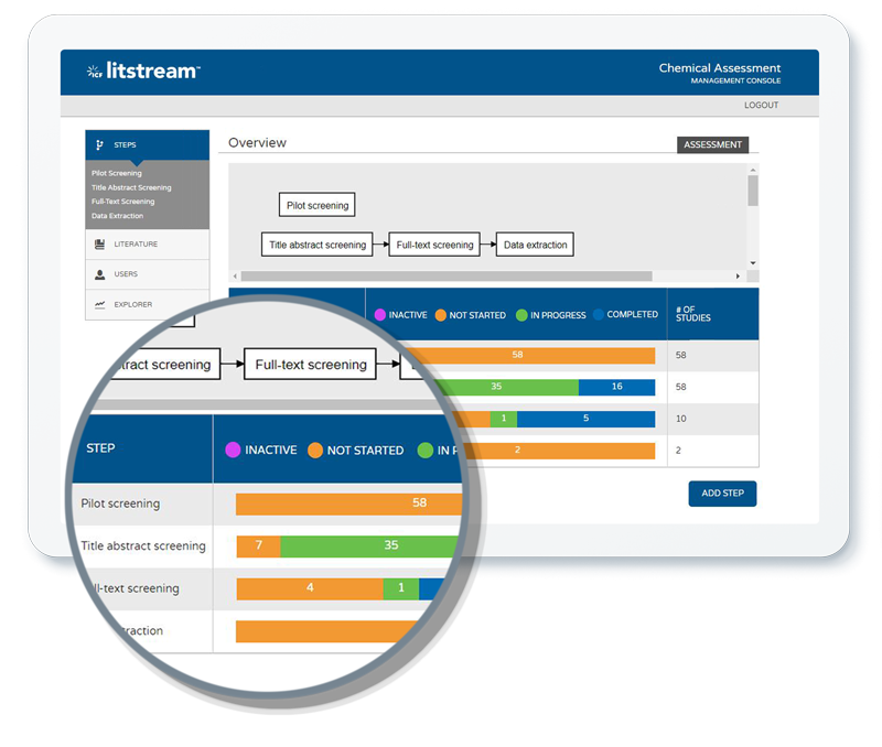 Systematic literature reviews can be herculean undertakings. That’s why we built Litstream. This tool allows researchers to collaborate on literature screening and data extraction through an efficient platform that tracks the literature process meticulously and across multiple team members working simultaneously. Managers can design fit-for-purpose review steps, make assignments, and monitor progress at a granular level. Litstream helps ensure transparent documentation of the review process while prioritizing the most relevant literature to your team of subject matter experts.