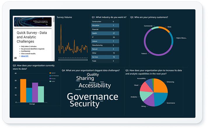 We were thrilled to participate in the recent AWS DC Summit, which provided an unequalled, in-person space for attendees across various industries to connect around shared interests in AWS, its technologies, and the capabilities of its vast range of partners and alliances. ICF created and deployed, in collaboration with our friends at AWS, a survey of event attendees with real-time visualization in Quicksight. Our goal was to informally assess the industry and customer representation, current data and cloud practices, plans, and challenges. While there was a broad distribution across many of the questions, data governance surfaced as a universal data challenge, and opportunity.